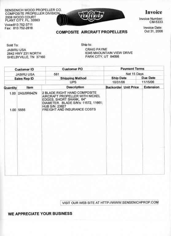 description on the Sensenich invoice says "2 bladed right hand composite