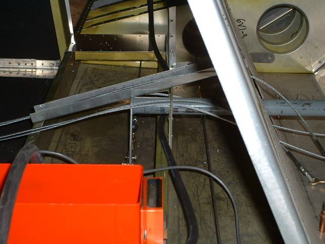 Longeron run. The cable is temporarily mounted using Adel clamps. I'll eventually use cable ties for a neater installation.