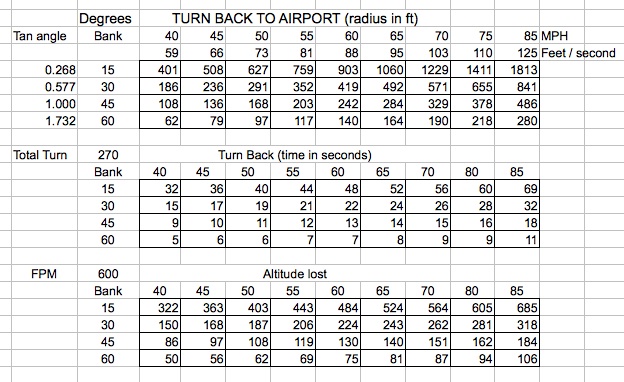 You bring up a good point. The tables I posted assume 1 G flight because the original question was about turning back with engine out. In a descending turn without power or attempt to hold altitude it is easy enough to maintain 1 G or less.