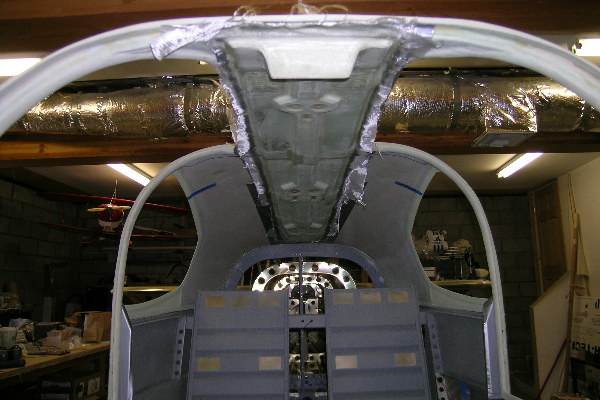 To make it fit I taped the bottom of it with professional release tape (aka packing tape), positioned it in the place I wanted it on the cabin lid, and went to town with professional molding foam (aka urethane foam door and window gap sealer). Once the foam hardened I sculpted it with a professional sculpting tool I acquired from the local Wal-Mart for about $9 in the knife area (aka electric knife). I then covered it with micro and some ply's in strategic places. For the hard points I took a piece of AL HVAC tape, made a small cylinder, put in a chunk of AL, and filled with flox. Drilled and tapped.