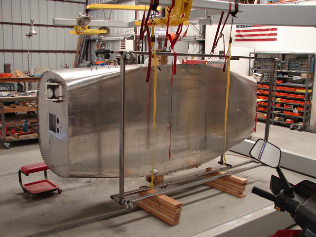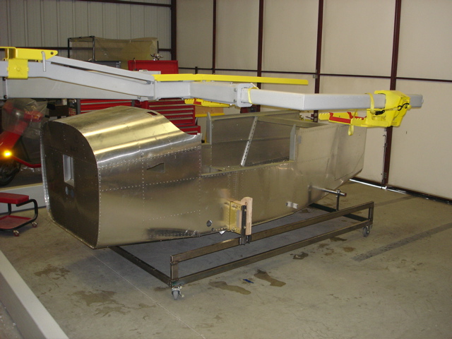 Here are a couple of fotos of the stand I built. I use my aerolift to turn the stand on it's side, which allows me to work on the fuselage without leaning over. This is a real back saver! 2 people can easily rotate the stand without a lifting device. It cost about 30 bucks in thin wall 1X2 steel and a set of cheap casters.