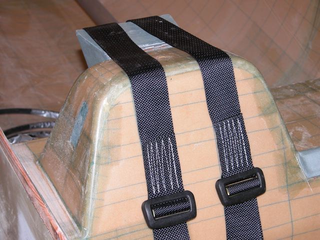 the shoulder belts. The cables run through small holes in the D bulkhead.