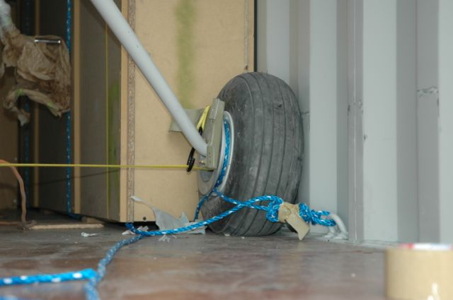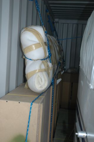 Since we’re on this subject, here’s a couple of pictures of our “truck” packing. Everything was in crates except the fuselage and HS, then very well secured several ways. The width of the gear was a press-fit into the container, but it did fit. We just lifted it up and in, but ramps would be nice also if you can keep them from sliding or falling off.