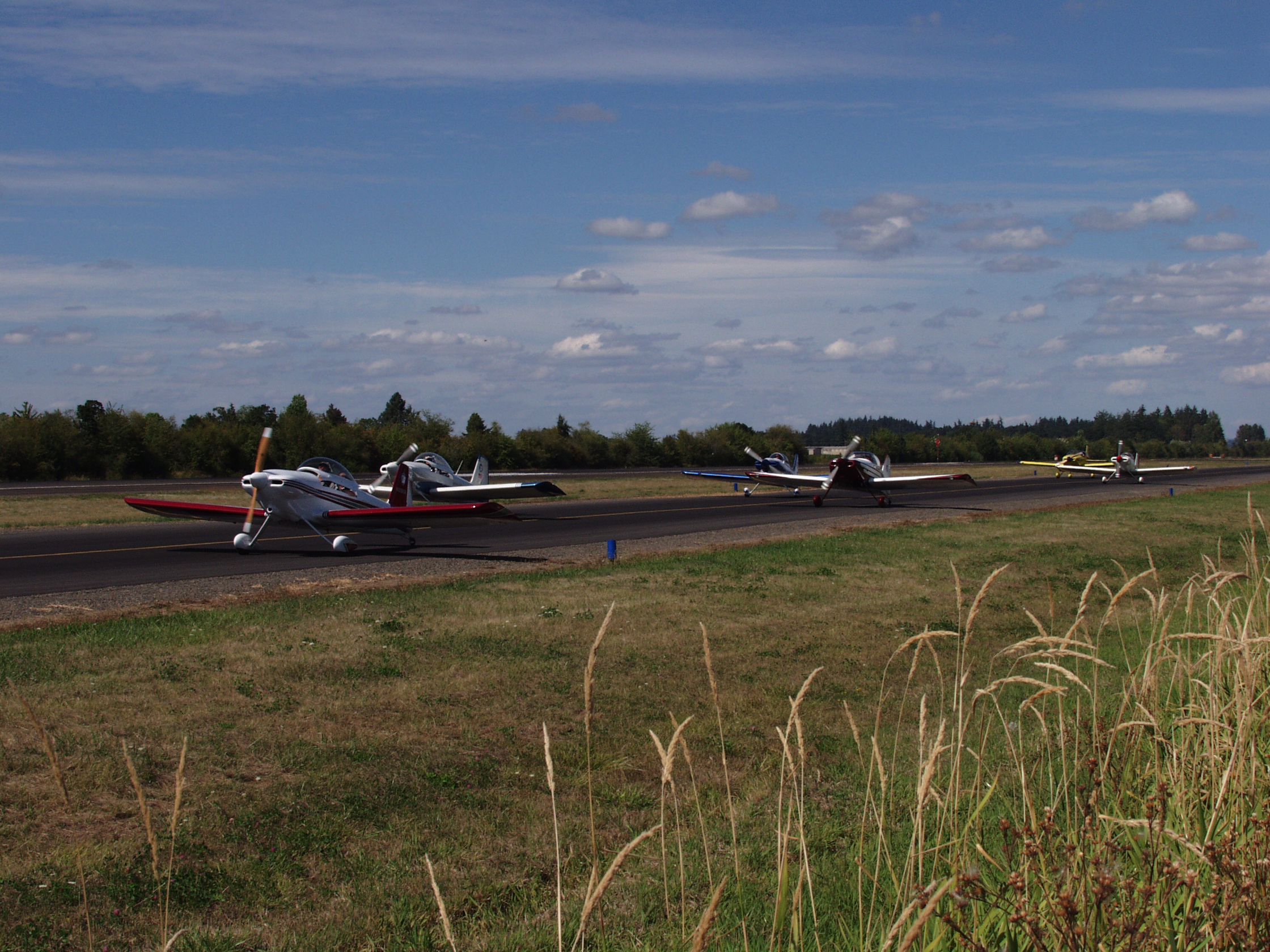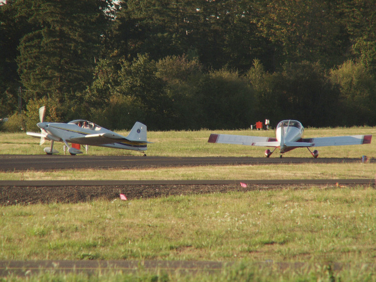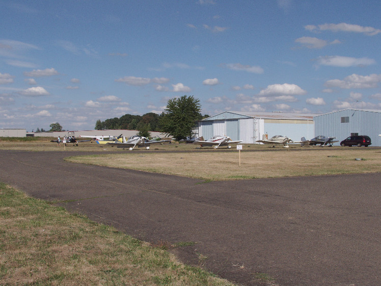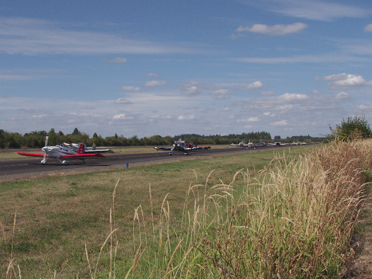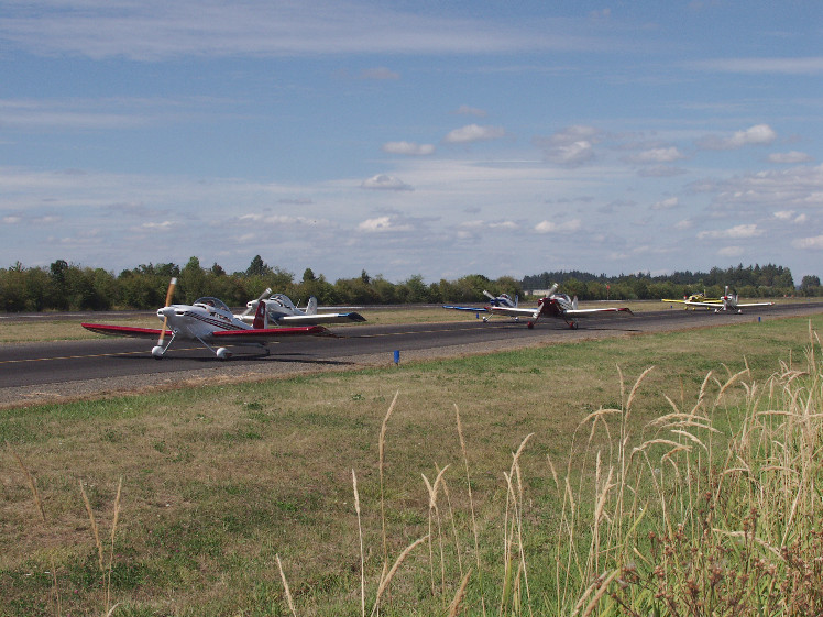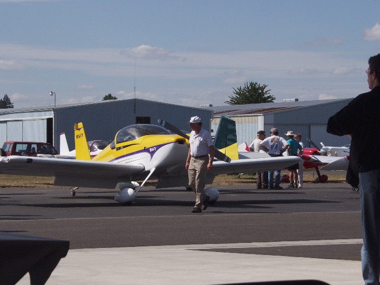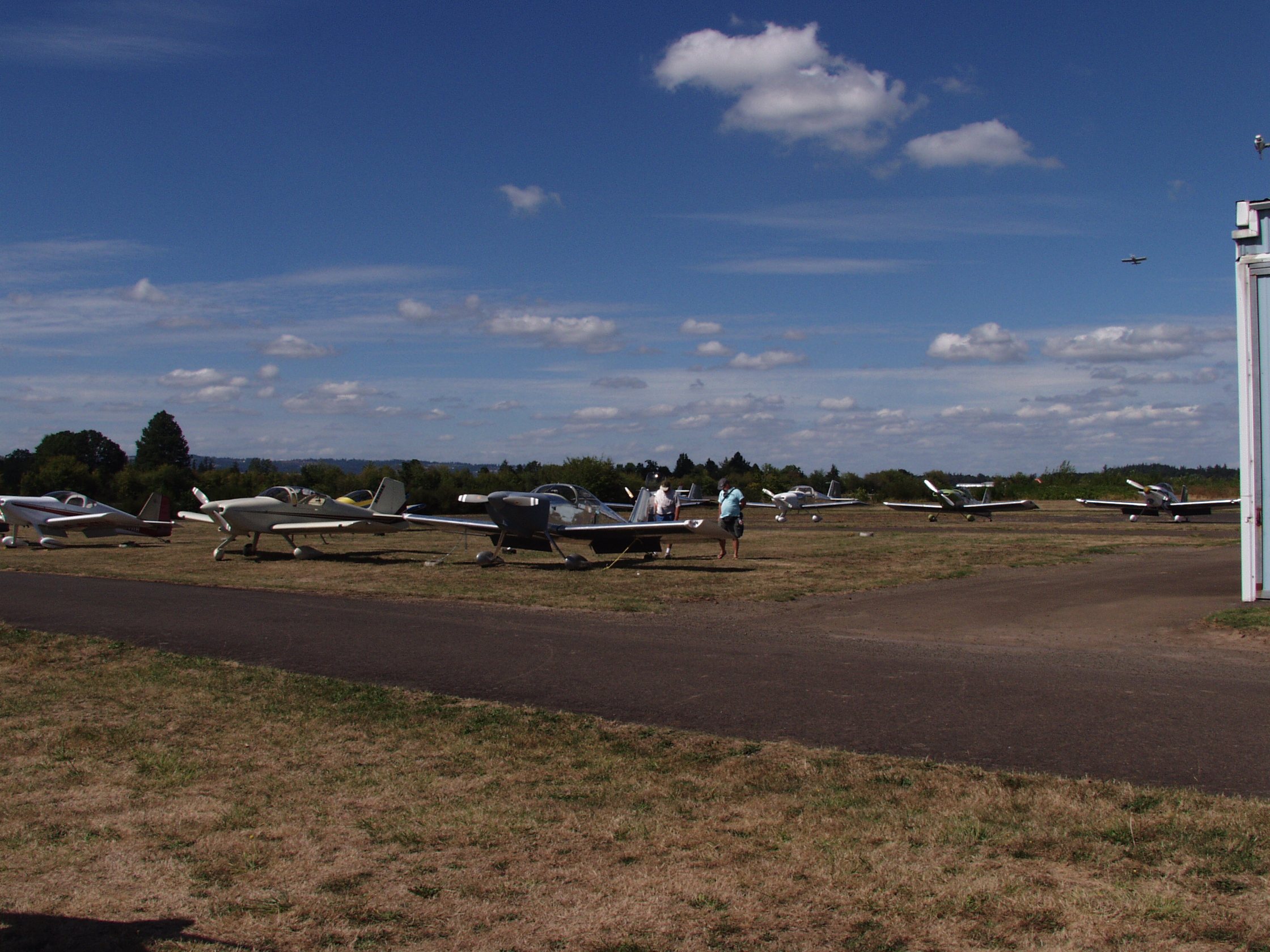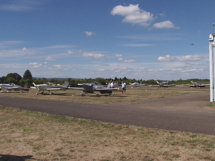 The following pictures are from the 2001 Van's Aircraft Homecoming fly-in at the Aurora airport about 20 miles South of Portland, Oregon. The cloudy-day pictures are from Saturday and the sunny-day pictures are from Sunday. These are just a random collection of shots I took during the day, but they give a nice feel for the event. The BBQ on Sunday afternoon was outstanding, with ribs hot off the grill! Feel free to email dralle@matronics.com with any questions you might have regarding the pictures.