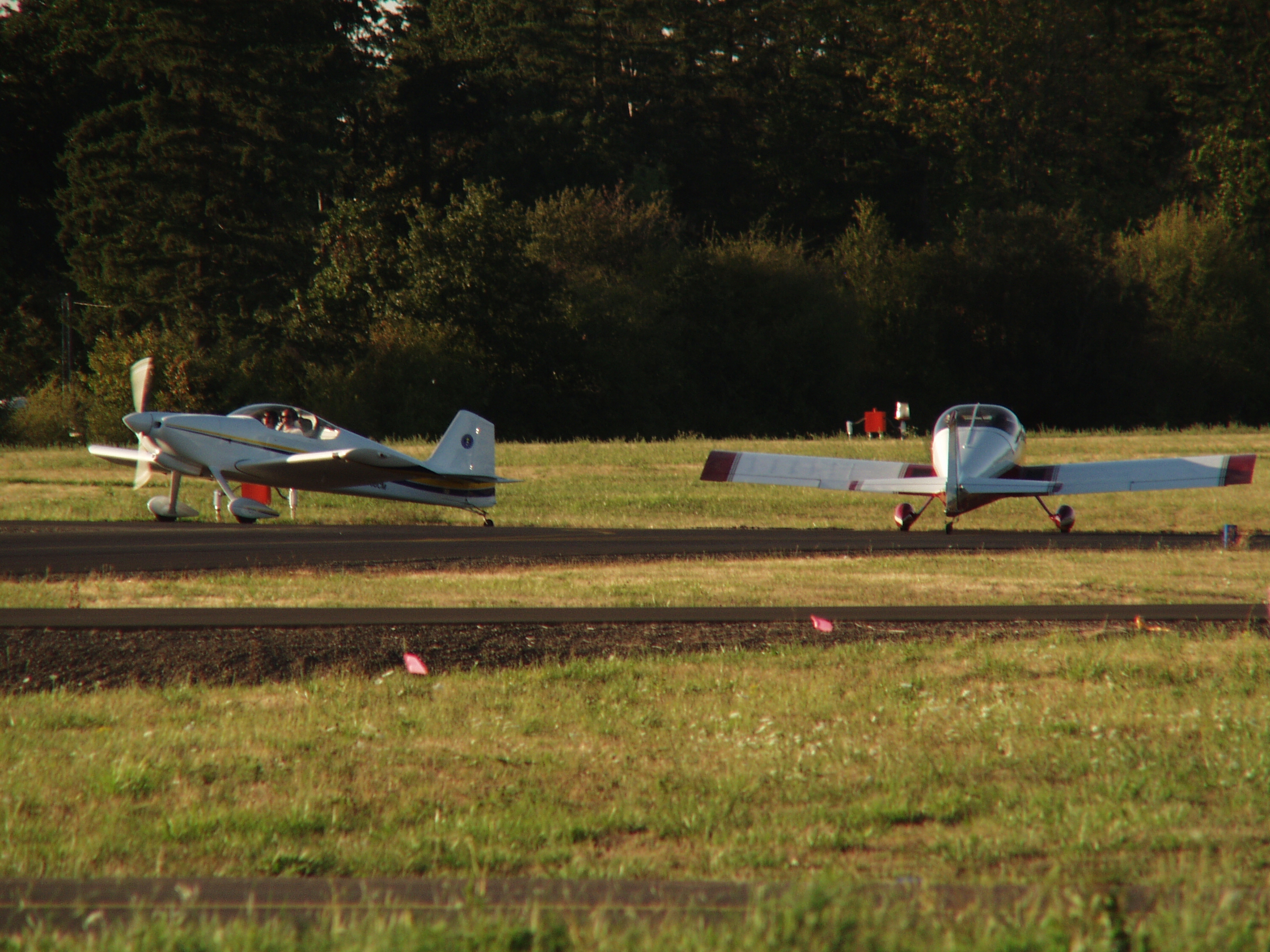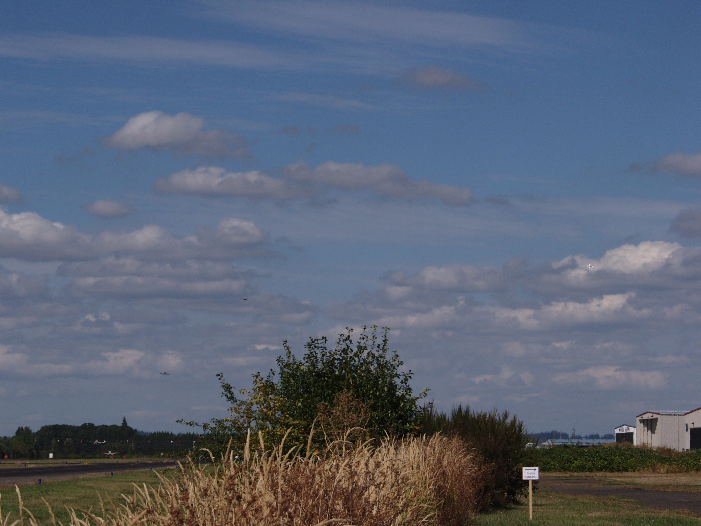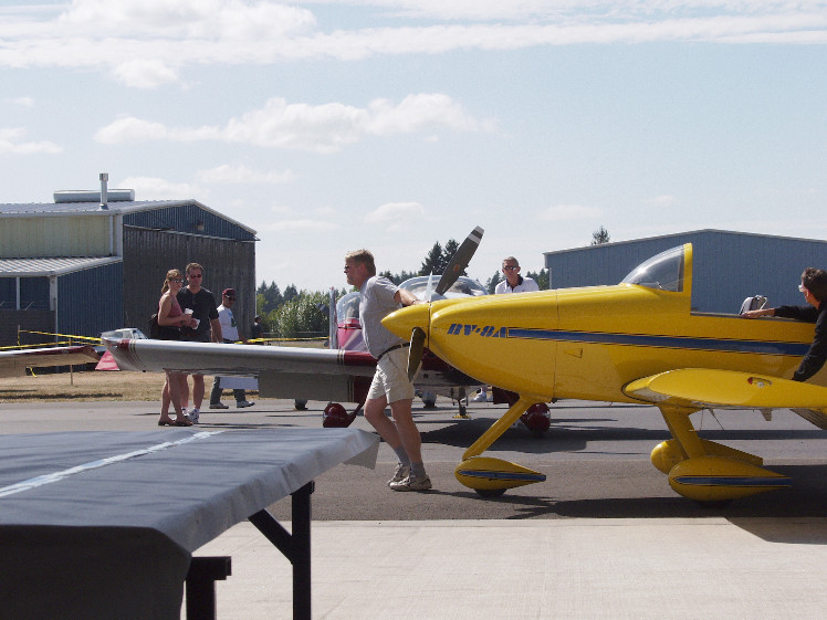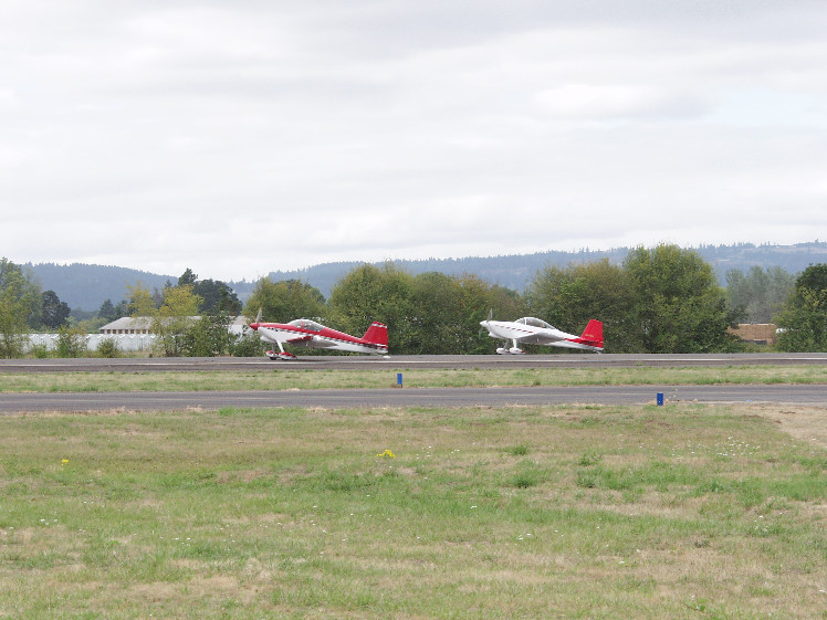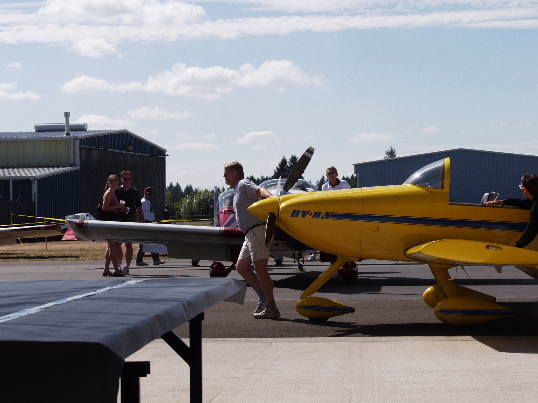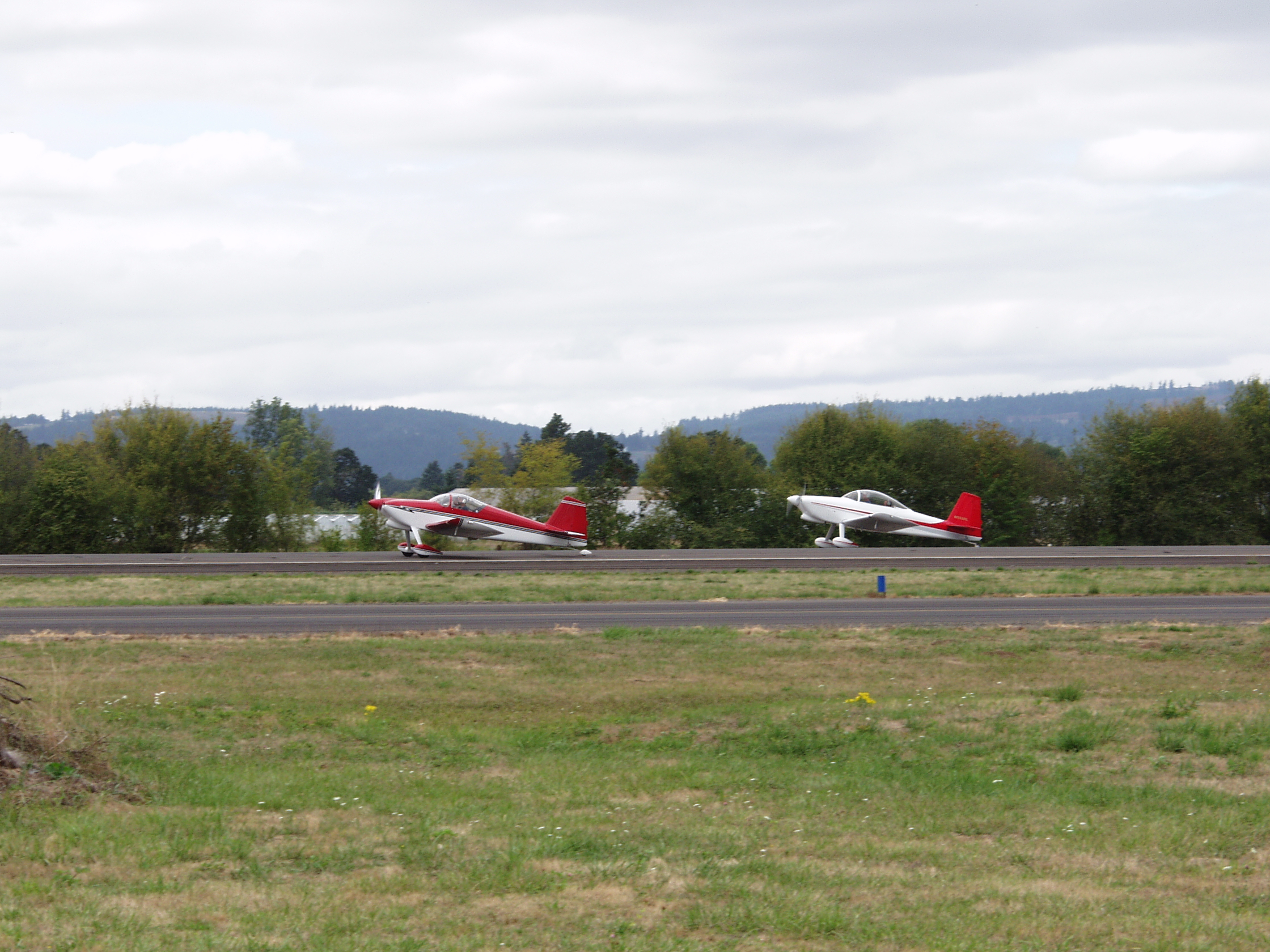 The following pictures are from the 2001 Van's Aircraft Homecoming fly-in at the Aurora airport about 20 miles South of Portland, Oregon. The cloudy-day pictures are from Saturday and the sunny-day pictures are from Sunday. These are just a random collection of shots I took during the day, but they give a nice feel for the event. The BBQ on Sunday afternoon was outstanding, with ribs hot off the grill! Feel free to email dralle@matronics.com with any questions you might have regarding the pictures.