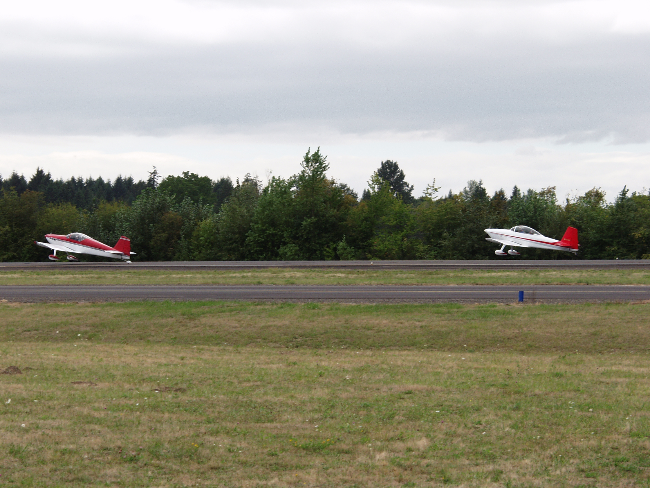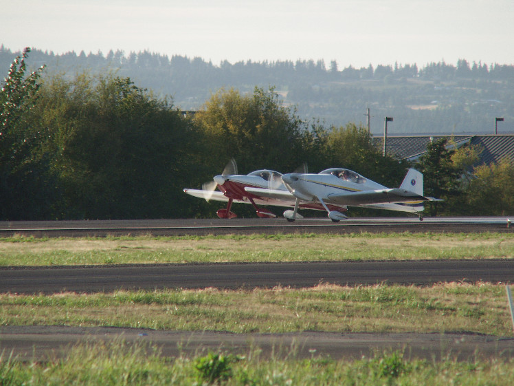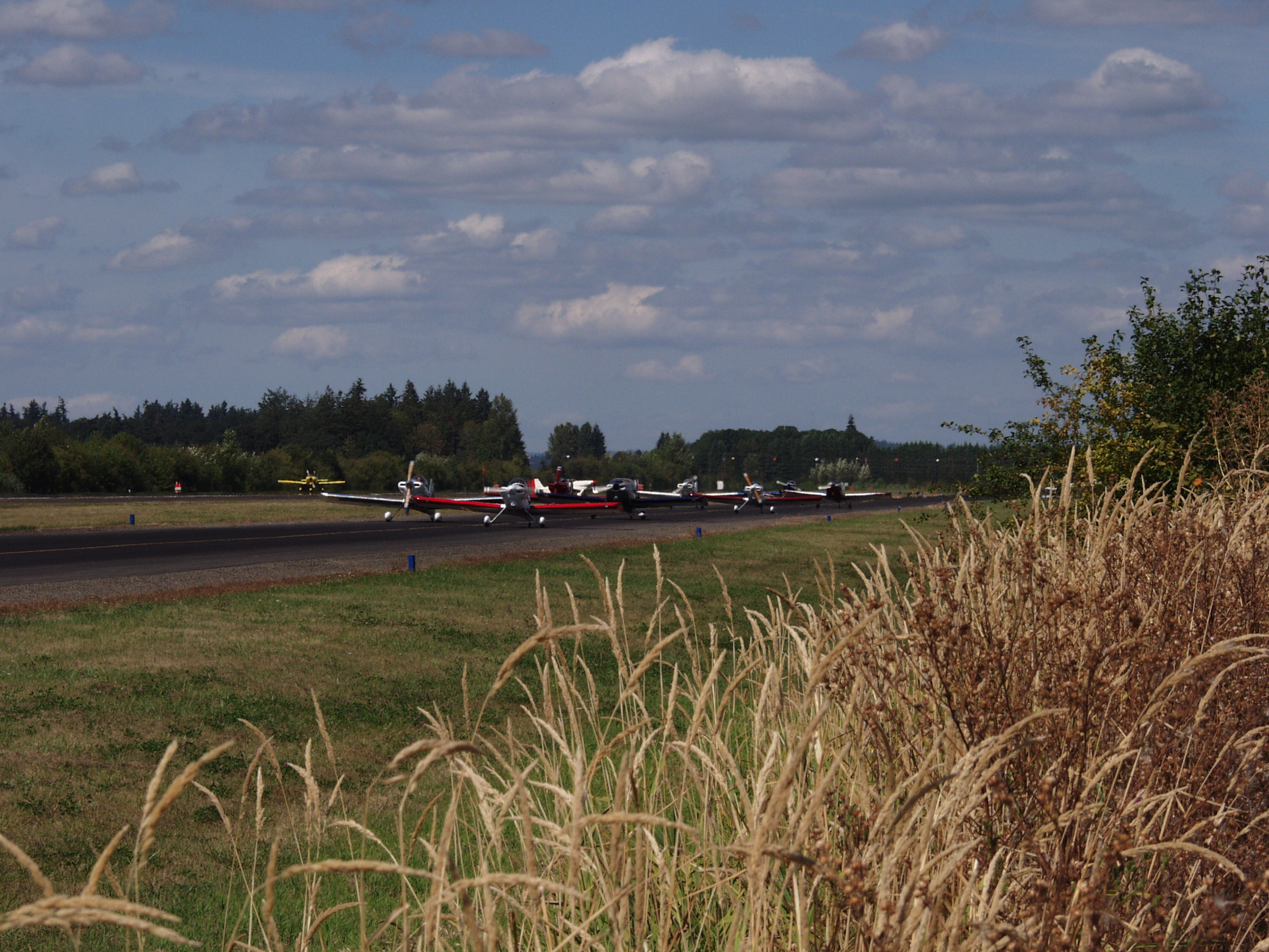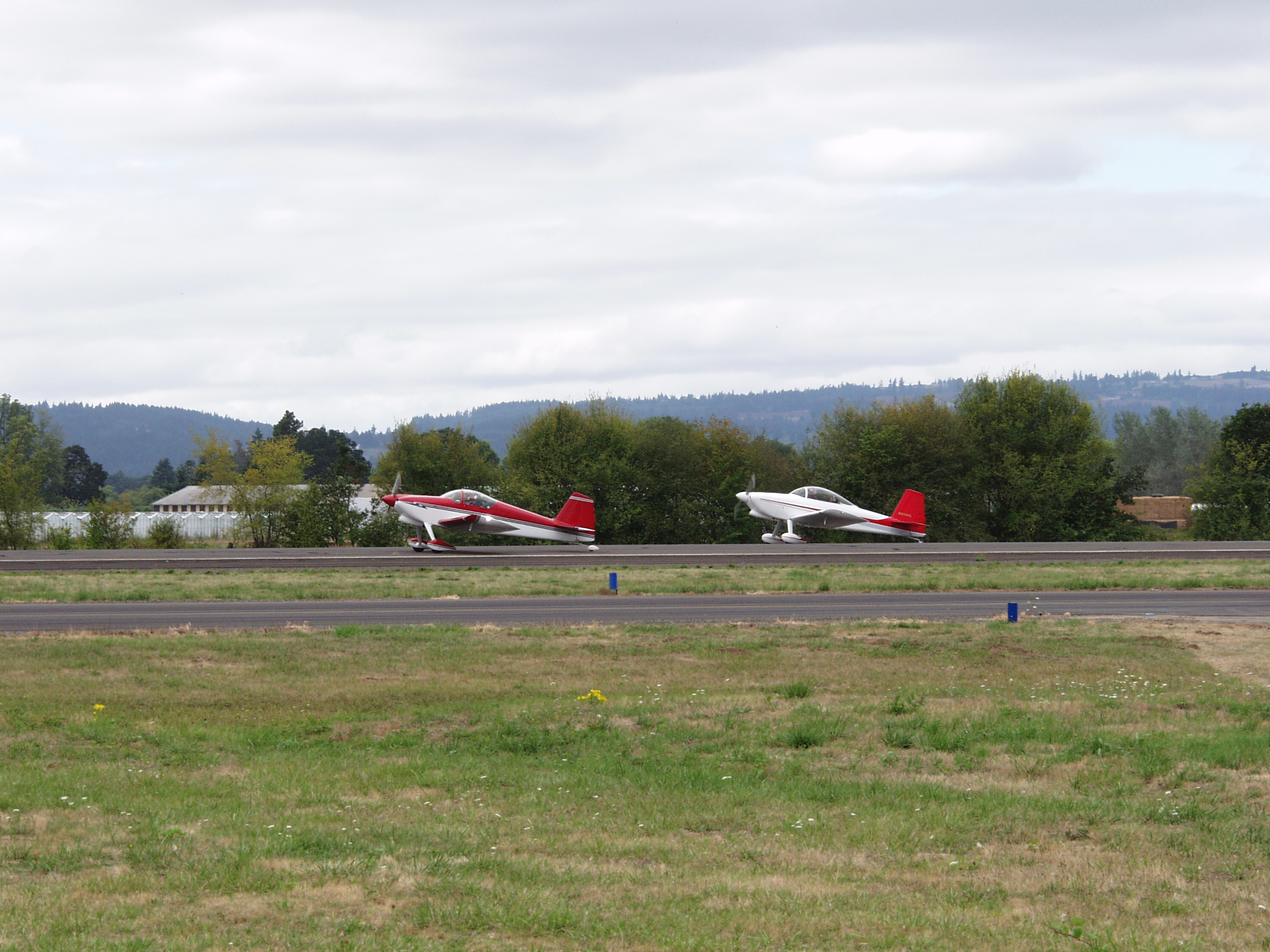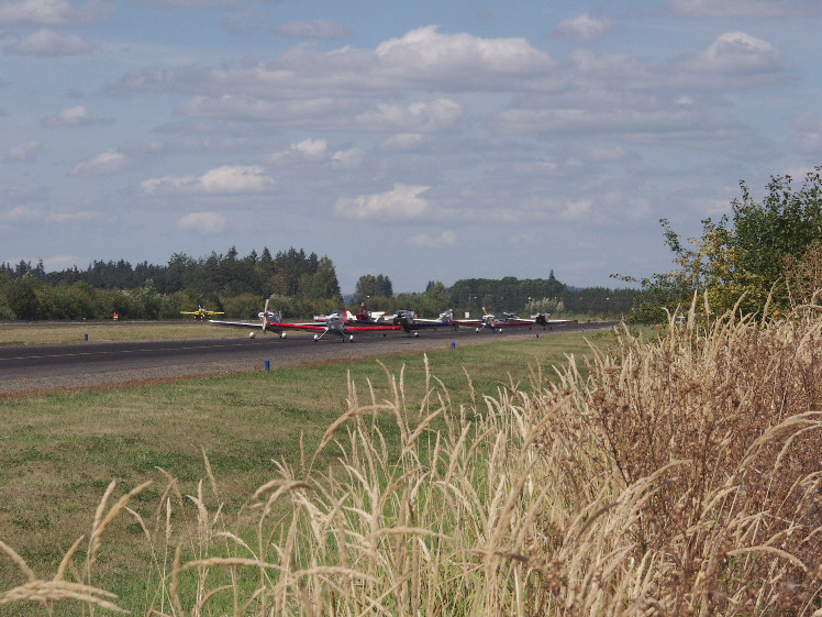 The following pictures are from the 2001 Van's Aircraft Homecoming fly-in at the Aurora airport about 20 miles South of Portland, Oregon. The cloudy-day pictures are from Saturday and the sunny-day pictures are from Sunday. These are just a random collection of shots I took during the day, but they give a nice feel for the event. The BBQ on Sunday afternoon was outstanding, with ribs hot off the grill! Feel free to email dralle@matronics.com with any questions you might have regarding the pictures.