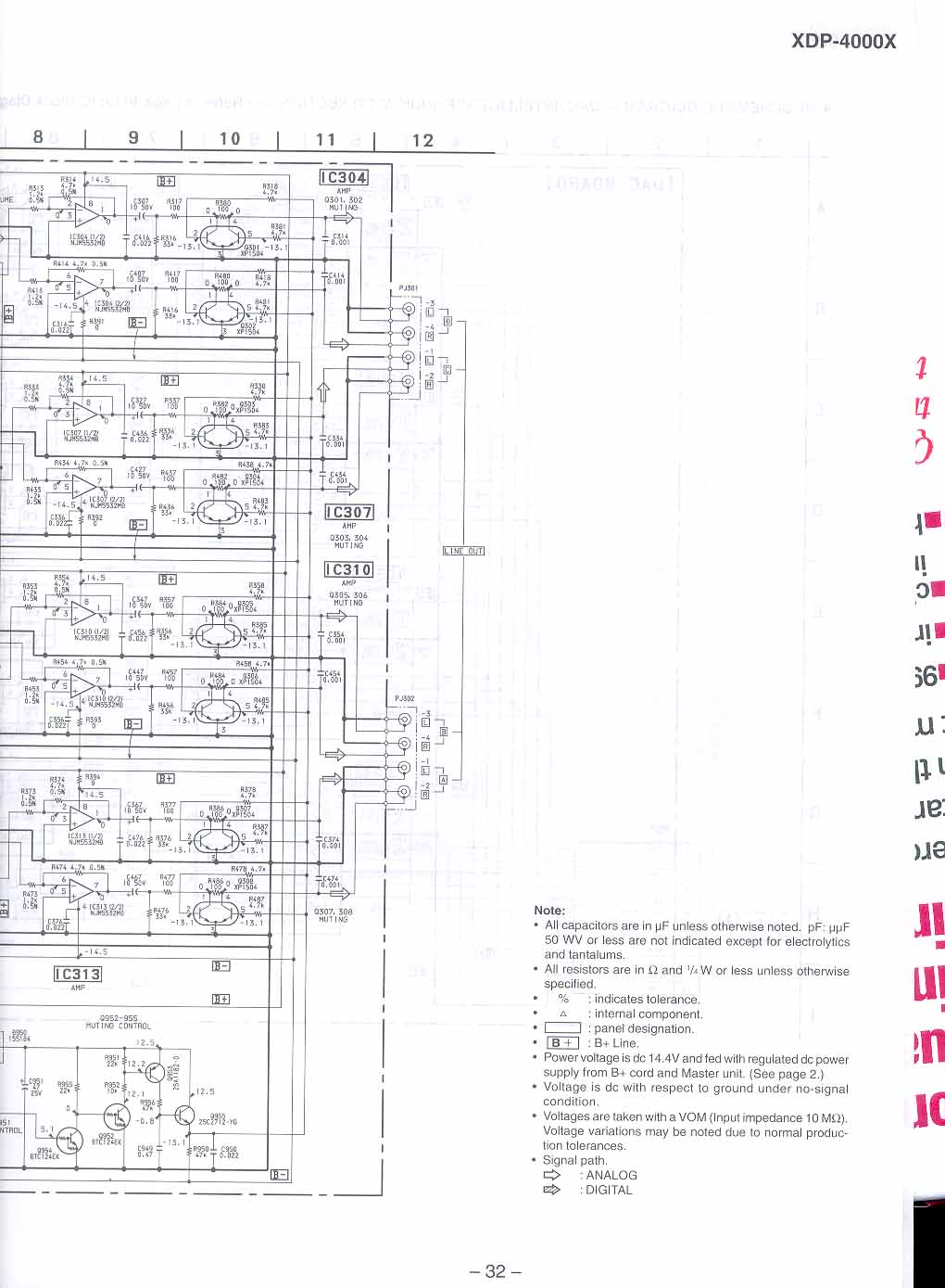 Revision 1 XDP-4000X - Main Board Part Number: 1-671-416-11 Revision 2 XDP-4000X - Main Board Part Number: 1-671-416-13 Revision 1 XDP-4000X - DAC Board Part Number: 1-671-417-11 Revision 2 XDP-4000X - DAC Board Part Number: 1-671-417-13 Revision 1 XDP-4000X - Indicator Board Part Number: 1-671-415-11 Revision 2 XDP-4000X - Indicator Board Part Number: 1-671-415-13 Each bitmap below is scanned at 150 DPI which should print nicely on a single sheet of 8.5" x 11" paper. You will have to use some appication like MS Paint to print them, however, as web browser's convert the image to 75 DPI and the image won't fit on a single page (and the resolution will be poor). You can click on each page below, or download the ZIP file that contains all of the images.