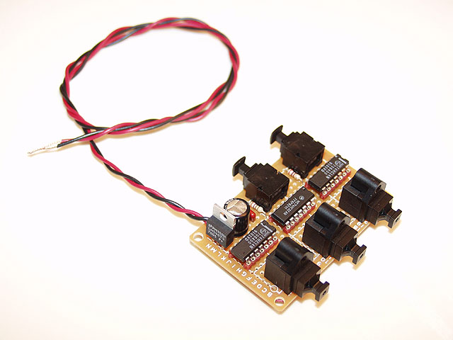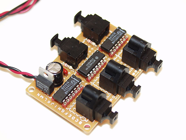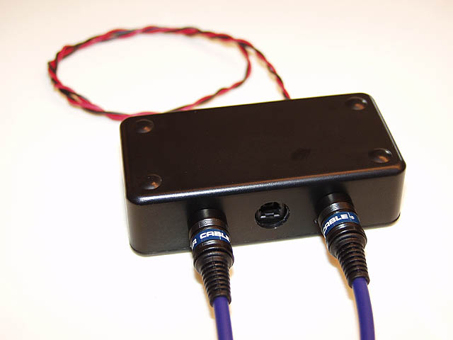 The reason the combiner circuit works in this particular TOSLINK environment is due to the fact that the Fiber Optic Outputs on the Sony CD Changers are switched off when they are not playing. Normal TOSLINK output devices such as a DVD player or a Satellite receiver do not switch off the LED when there is no audio present but rather leave it on with a carrier signal all the time. Thanks to Sony's insight in turning the LED off when the Changer is not selected and playing, it enables the Combiner/Splitter circuit to work quite nicely.