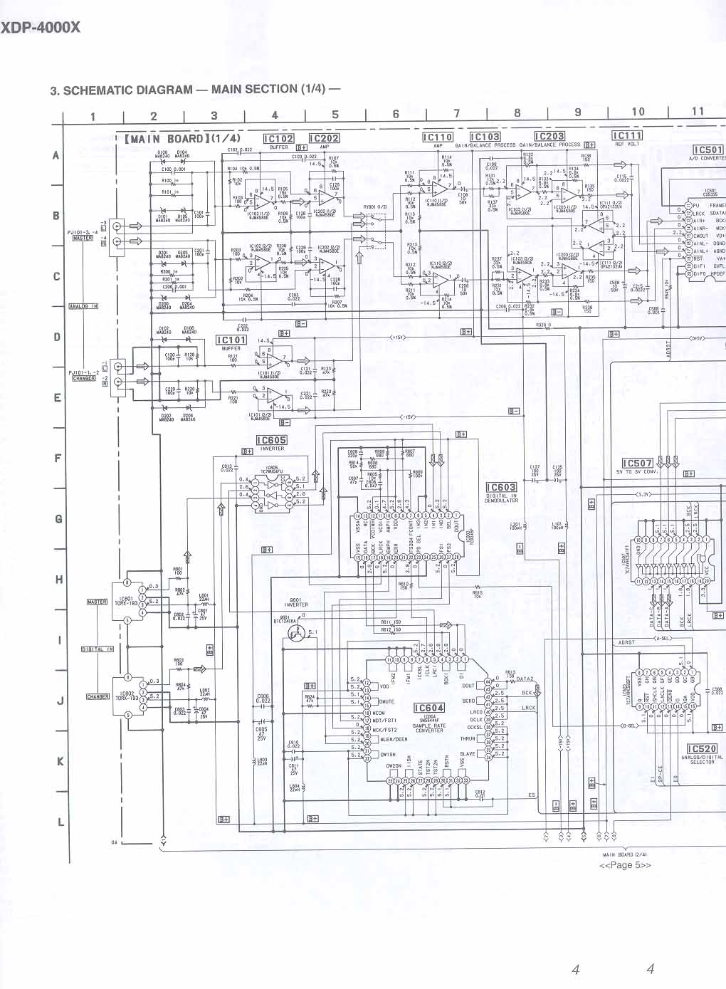 Revision 1 XDP-4000X - Main Board Part Number: 1-671-416-11 Revision 2 XDP-4000X - Main Board Part Number: 1-671-416-13 Revision 1 XDP-4000X - DAC Board Part Number: 1-671-417-11 Revision 2 XDP-4000X - DAC Board Part Number: 1-671-417-13 Revision 1 XDP-4000X - Indicator Board Part Number: 1-671-415-11 Revision 2 XDP-4000X - Indicator Board Part Number: 1-671-415-13 Each bitmap below is scanned at 150 DPI which should print nicely on a single sheet of 8.5" x 11" paper. You will have to use some appication like MS Paint to print them, however, as web browser's convert the image to 75 DPI and the image won't fit on a single page (and the resolution will be poor). You can click on each page below, or download the ZIP file that contains all of the images.